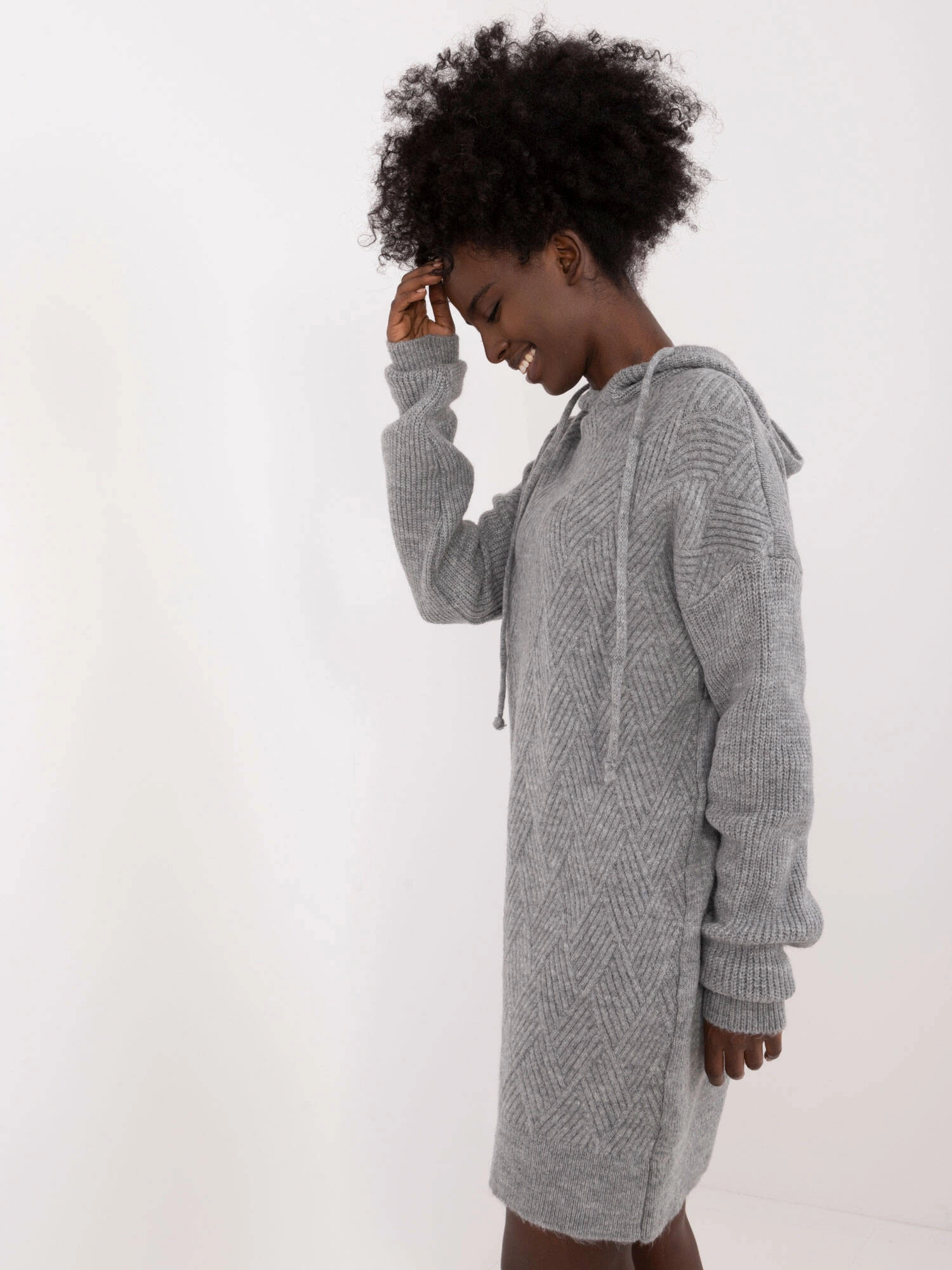 Pri výbere veľkosti venujte pozornosť nižšie uvedenej veľkostnej tabuľke. Veľkosti nezodpovedajú bežne nosenému oblečeniu. Voľné mini šaty Tieto šaty majú kapucňu, dlhé rukávy a dĺžku nad kolená. Materiál: 80 % akryl, 15 % polyester, 5 % elit. Šaty sú vhodné pre ženy, ktoré nosia veľkosť S - L.