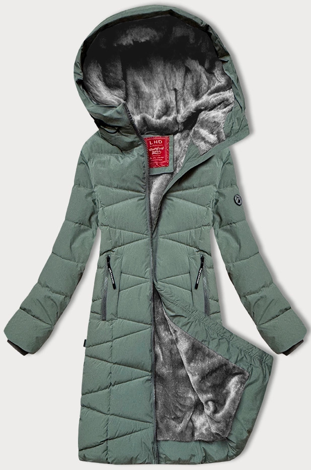 Šedo-zelená dámska zimná bunda s kožušinovou podšívkou LHD (LHD-24578) odstíny zelené XXL (44)
