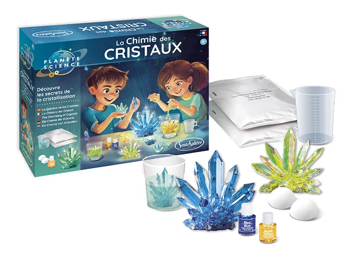 Súprava Chémia kryštálov od značky Sentosphere poskytuje všetko potrebné pre pestovanie farebných kryštálov a pozorovanie procesu kryštalizácie. Umožní deťom prakticky skúmať vznik kryštálov a zoznámiť sa s vlastnosťami niektorých minerálov.