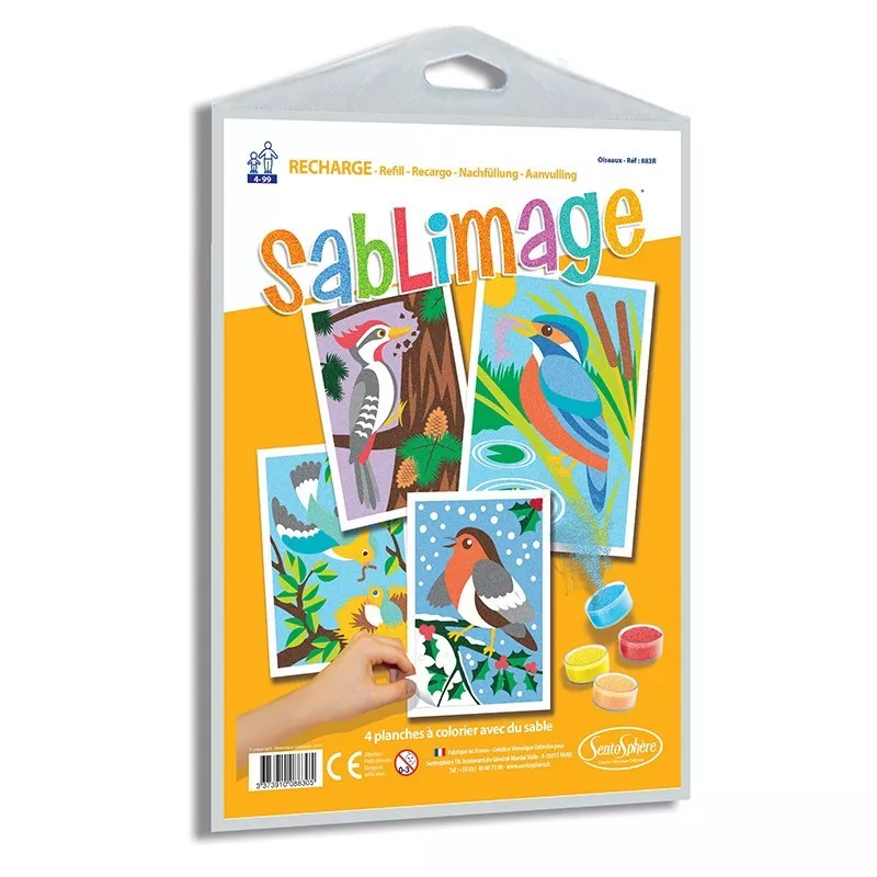 Tieto nádherné vtáčiky sa nevedia dočkať, až budú farebné. Oživte ich pomocou pieskového umenia a užite si zábavné tvorenie so súpravou pieskových obrázkov.