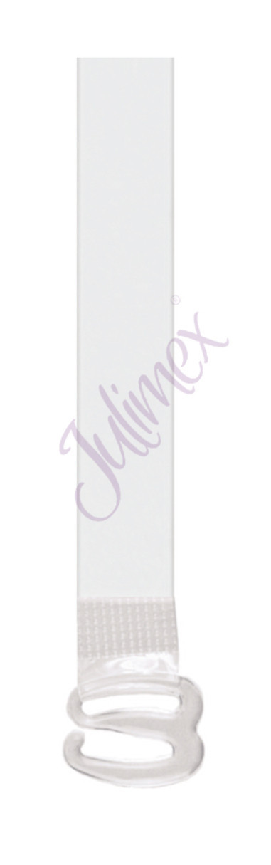 Pásiky široké 12 mm, vyrobené z priehľadného materiálu neutrálneho pre pokožku, zvárané, aby sa zaručilo pevné spojenie medzi háčikom a pásikom. Priehľadný plastový háčik..