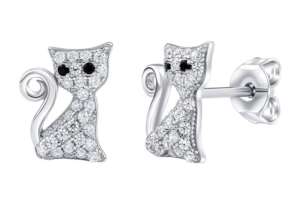 Silvego Hravé strieborné náušnice Mačičky s čírymi zirkónmi Bessie MW01038E