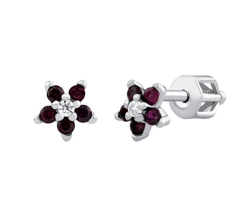 Silvego Strieborné náušnice kvietky Saskia so syntetickým rubínom a Briliance Zirconia SILVEGOB70459BDR