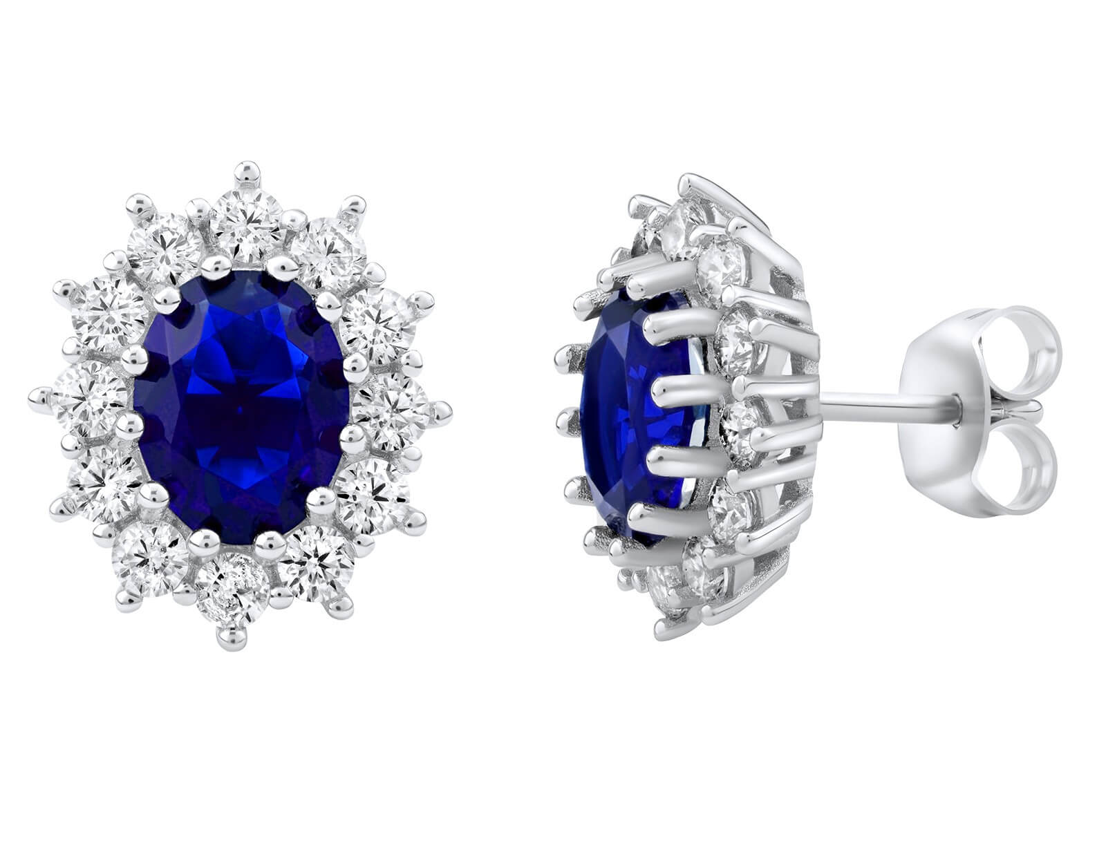 Silvego Strieborné náušnice so syntetickým modrým zafírom Kate JJJ985EB