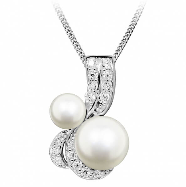 Silver Cat Očarujúce náhrdelník s perlami a zirkónmi SC422 (retiazka, prívesok)