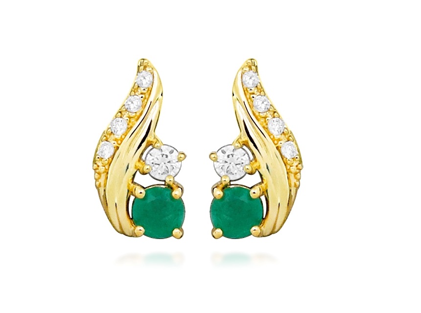 Silver Cat Pozlátené náušnice s kubickými zirkónmi a smaragdom SC544