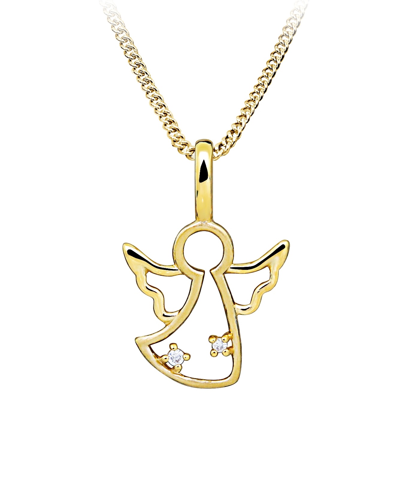 Silver Cat Pozlátený náhrdelník Anjelik so zirkónmi SC642 (retiazka, prívesok)