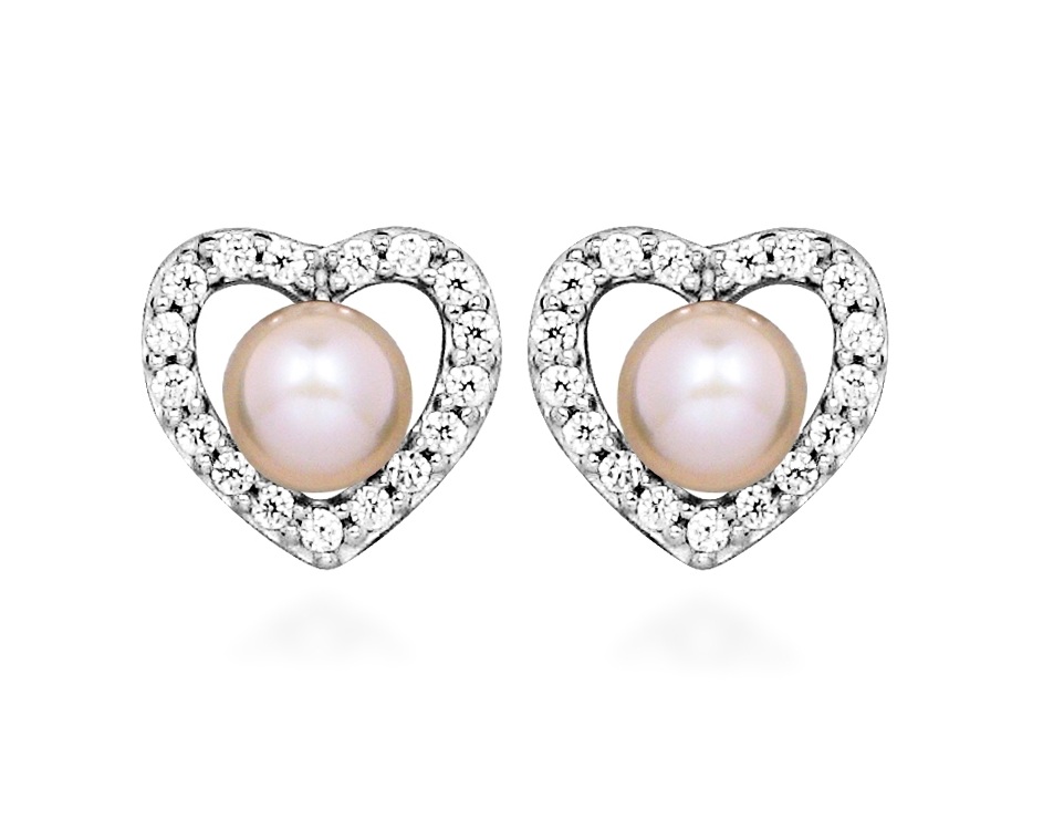 Silver Cat Strieborné srdiečkové náušnice s pravou perlou Love & Infinity SC622