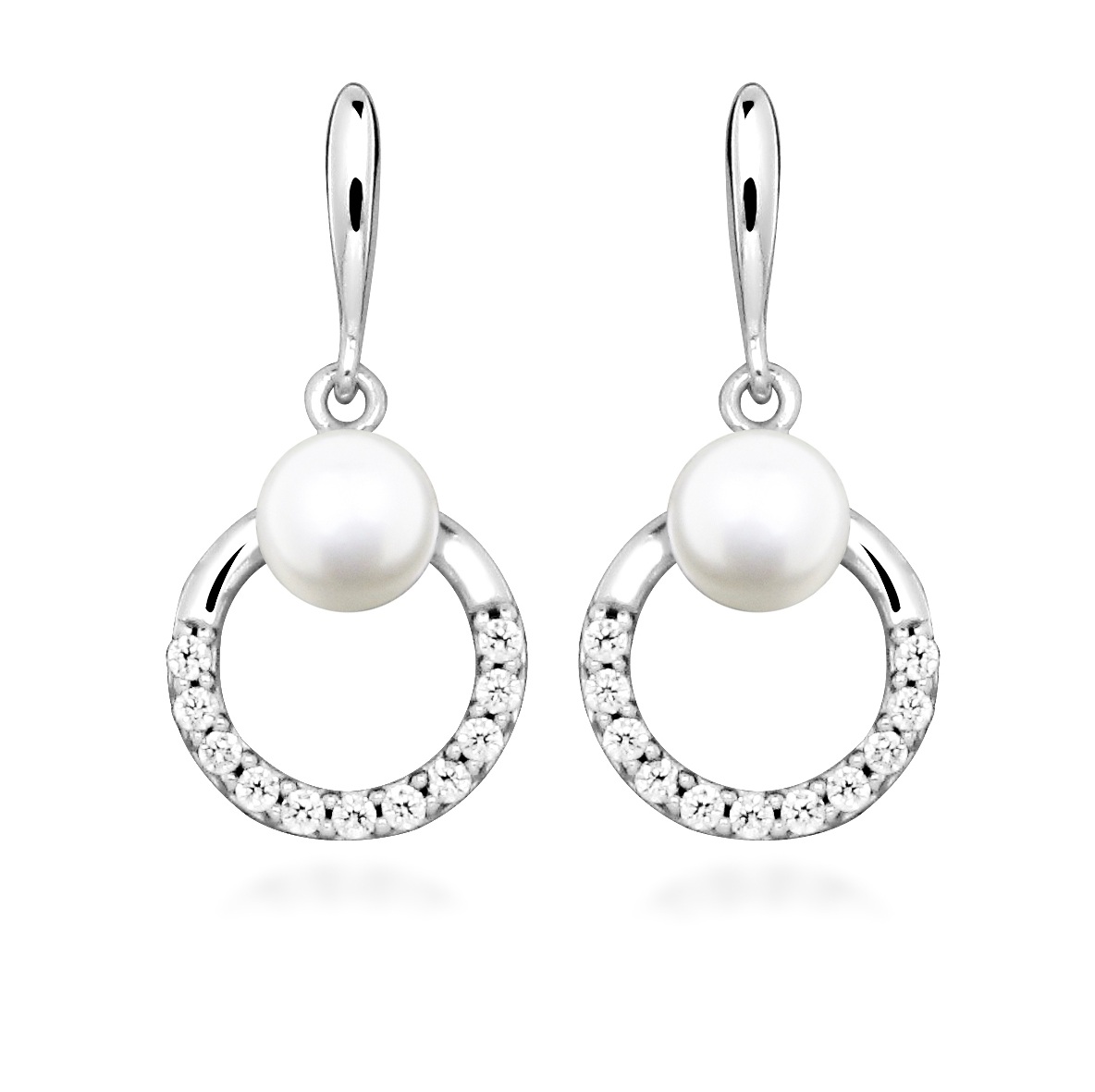Silver Cat Strieborné visiace náušnice s pravou perlou a zirkónmi Pearls SC602