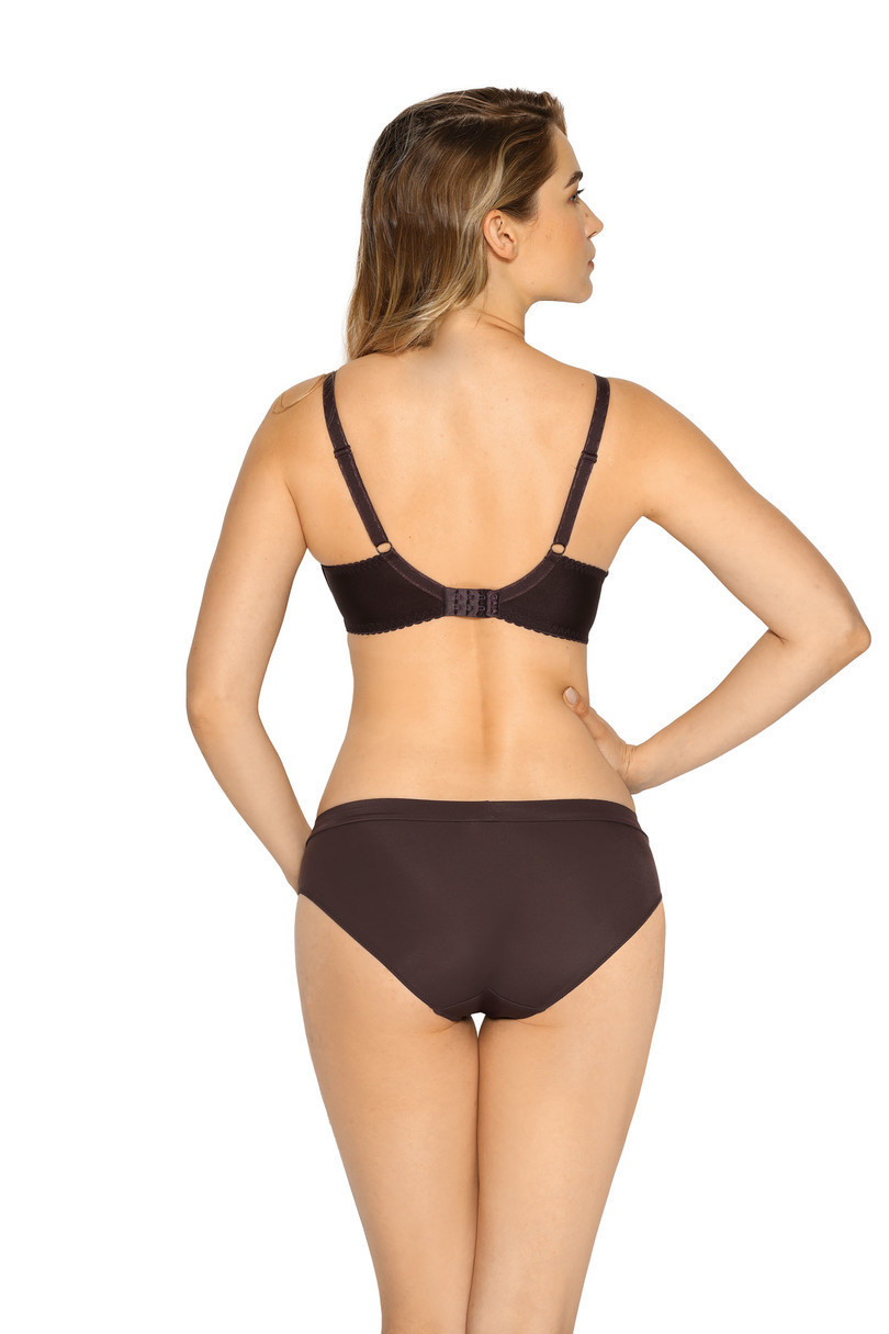 Polovystužená podprsenka s jesenným vzorom vo vínovej farbe. Vrchná časť podprsenky je vyrobená z čierneho tylu. Zloženie: 53% polyamid, 20% polyester, 14% bavlna, 10% elastan, 3% polyuretán.