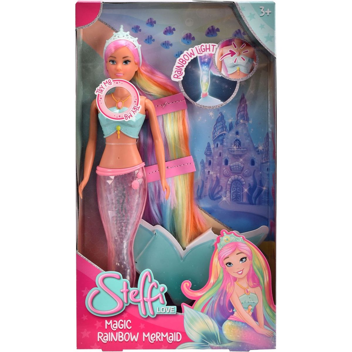 Zažite nekonečné dobrodružstvá s bábikou Steffi Morská víla Magic od Simba. Bábika má kúzelný dúhový svetelný plutv a dlhé vlasy, ktoré môžete česať. Je vodeodolná a vysoká 39 cm. Potrebuje jednu batériu LR44, ktorá nie je súčasťou balenia. Vhodné pre deti od 3 rokov. Hlavné parametre: - Výška: 39 cm - Typ batérie: LR44 (gombíková) - Počet batérií: 1 - Vek: Predškolák (3-5 rokov)