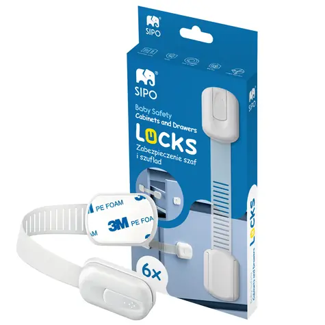 Sipo Bezpečnostné zámky viacúčelové pre skrinky a zásuvky, nastaviteľné, súprava 6 ks (SPSBS-217)