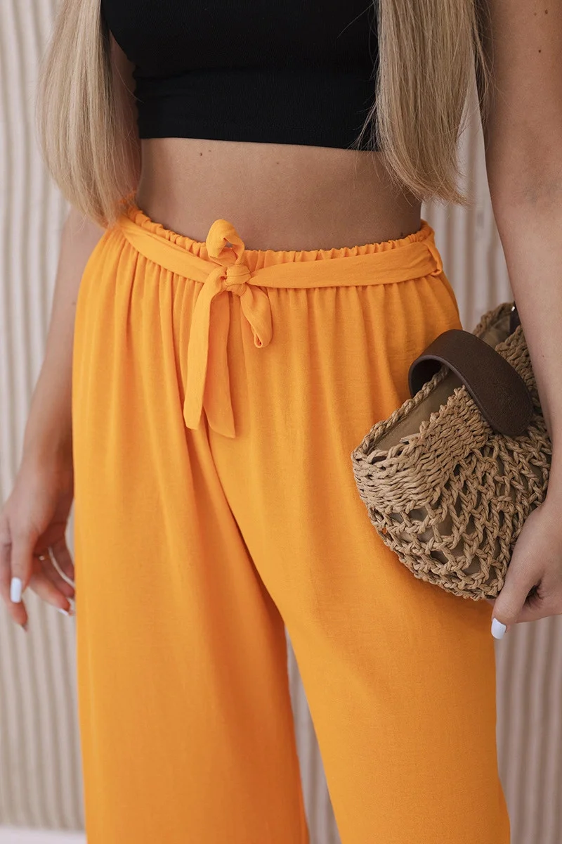 Široké nohavice s viazaním v páse sú módnou a pohodlnou voľbou na mnohé príležitosti. Široké nohavice dodávajú celému stylingu voľnosť a ľahkosť, zatiaľ čo viazanie v páse umožňuje prispôsobiť nohavice vašim individuálnym preferenciám. Ideálne sú na letné prechádzky, neformálne stretnutia alebo večerné vychádzky, dodajú vášmu štýlu módny akcent a pohodlne sa nosia. Tieto nohavice sa rýchlo stanú nepostrádateľným prvkom vo vašom šatníku, pretože spájajú funkčnosť a štýl. Veľkosť je univerzálna a bude vhodná pre ženy, ktoré nosia veľkosť S, M alebo L. TALIANSKA VÝROBA Materiálové zloženie: materiálové zloženie: 95 % polyester, 5% elastan. Nižšie uvedené miery sú merané ako plocha +/- 1 cm Ak chcete získať rozmer obvodu, vynásobte šírku číslom 2 Rozmery Šírka v páse: 34 cm/po natiahnutí: 50 cm Celková dĺžka: 100 cm Dĺžka od rozkroku: 70 cm Šírka nohavíc: 32 cm Šírka bokov: 63 cm Recept na pranie: Pred čistením oblečenia si vždy prečítajte pokyny na pranie uvedené na vnútornom štítku. Perte pri maximálnej teplote 30 °C, žehlite pri maximálnej teplote 110 °C, Nebieľte ani nechlórujte, Čistite chemicky v benzíne, Nesušte v bubnovej sušičke.