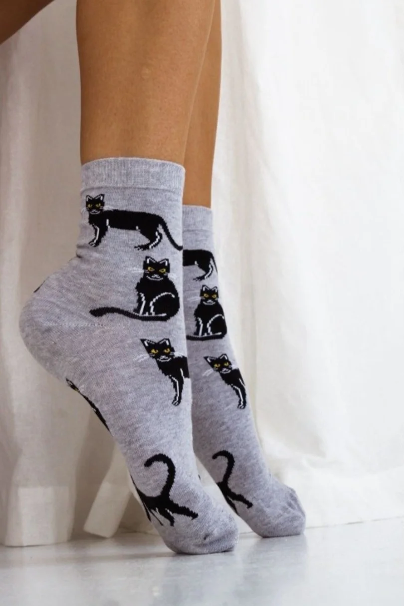 Dámske ponožky so vzorom čiernej mačky.