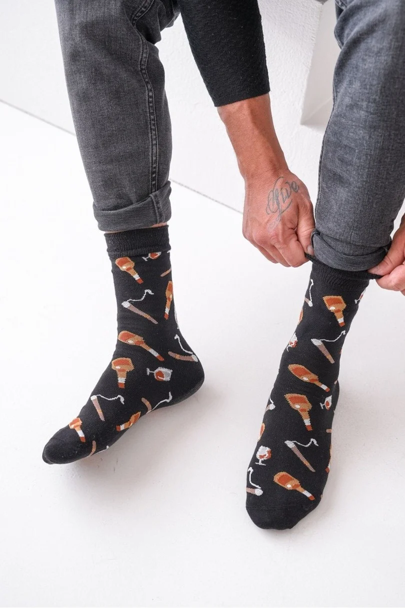 Objavte eleganciu a jedinečný štýl s pánskymi ponožkami Avangard Whiskey and Cigar od renomovanej značky Milena. Tieto módne vzorované ponožky sú ideálnou voľbou pre mužov, ktorí oceňujú luxus a klasický dizajn. Sú vyrobené z kvalitnej bavlny (75 %), poskytujú pohodlie a priedušnosť počas celého dňa, zatiaľ čo prídavok elastanu (5 %) a polyamidu (20 %) zaručuje dokonalé prispôsobenie a odolnosť.Jedinečný vzor odkazuje na svet sofistikovaných pôžitkov - whisky a cigár -, vďaka čomu sú ideálnym doplnkom elegantného stylingu alebo dokonalým