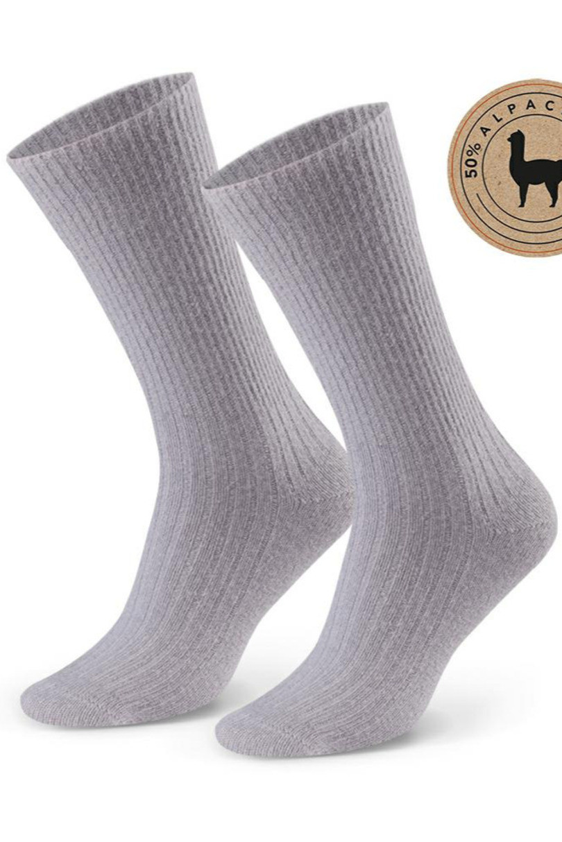 Ponožky z vlny alpaky, ktorá je trikrát silnejšia ako ovčia vlna, neabsorbujú pachy, majú hypoalergénne a tepelnoizolačné vlastnosti. Ich rebrovaná štruktúra zabraňuje zbytočnému tlaku na chodidlo..