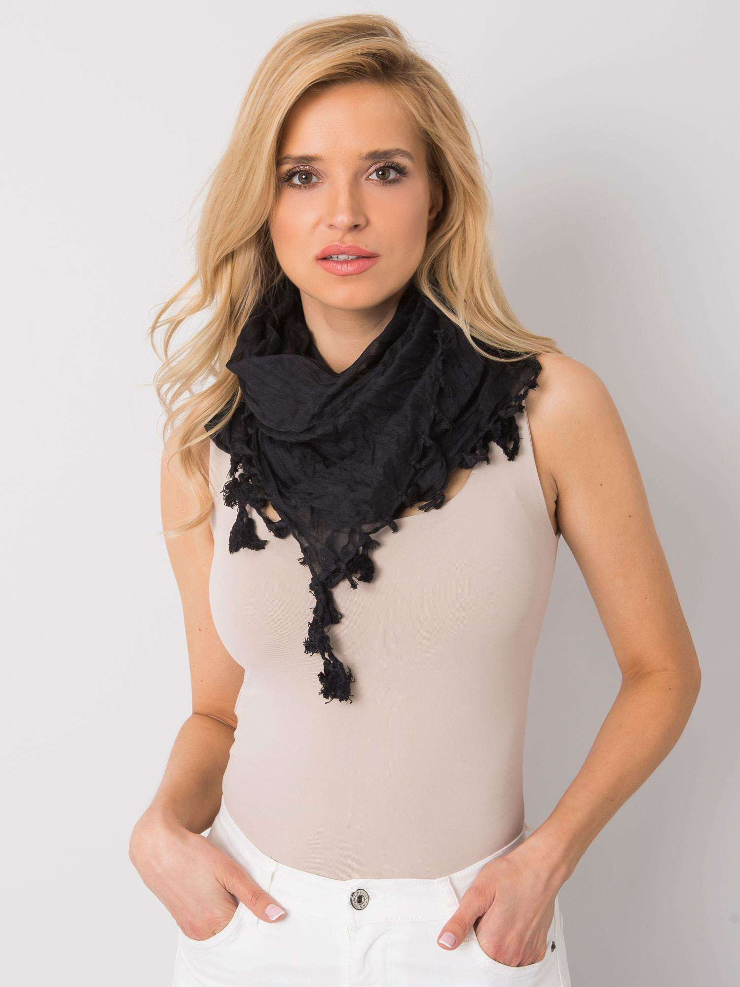 Čierna dámska šatka so strapcami. 100% viskóza spôsob prania: pranie v práčke pri 30 °C rozmery: približne 110 x 110 cm