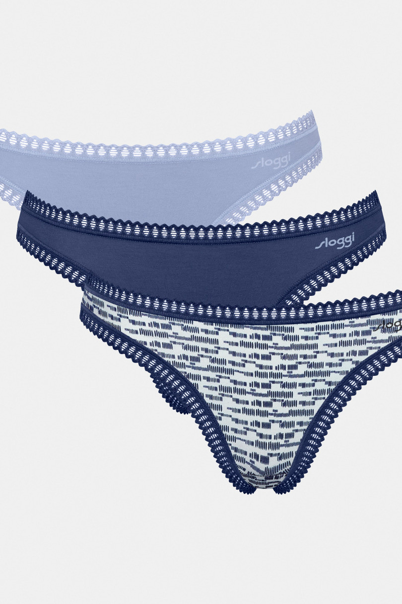 Dámske nohavičky v štýle tangá s úzkymi bokmi. Extra mäkká organická bavlna s certifikátom GOTS. Elastické čipkované lemy pre lepšie prispôsobenie. 3 kusy v balení v uvedených farbách.Zloženie: 95 % bavlna, 5 % elastan. .