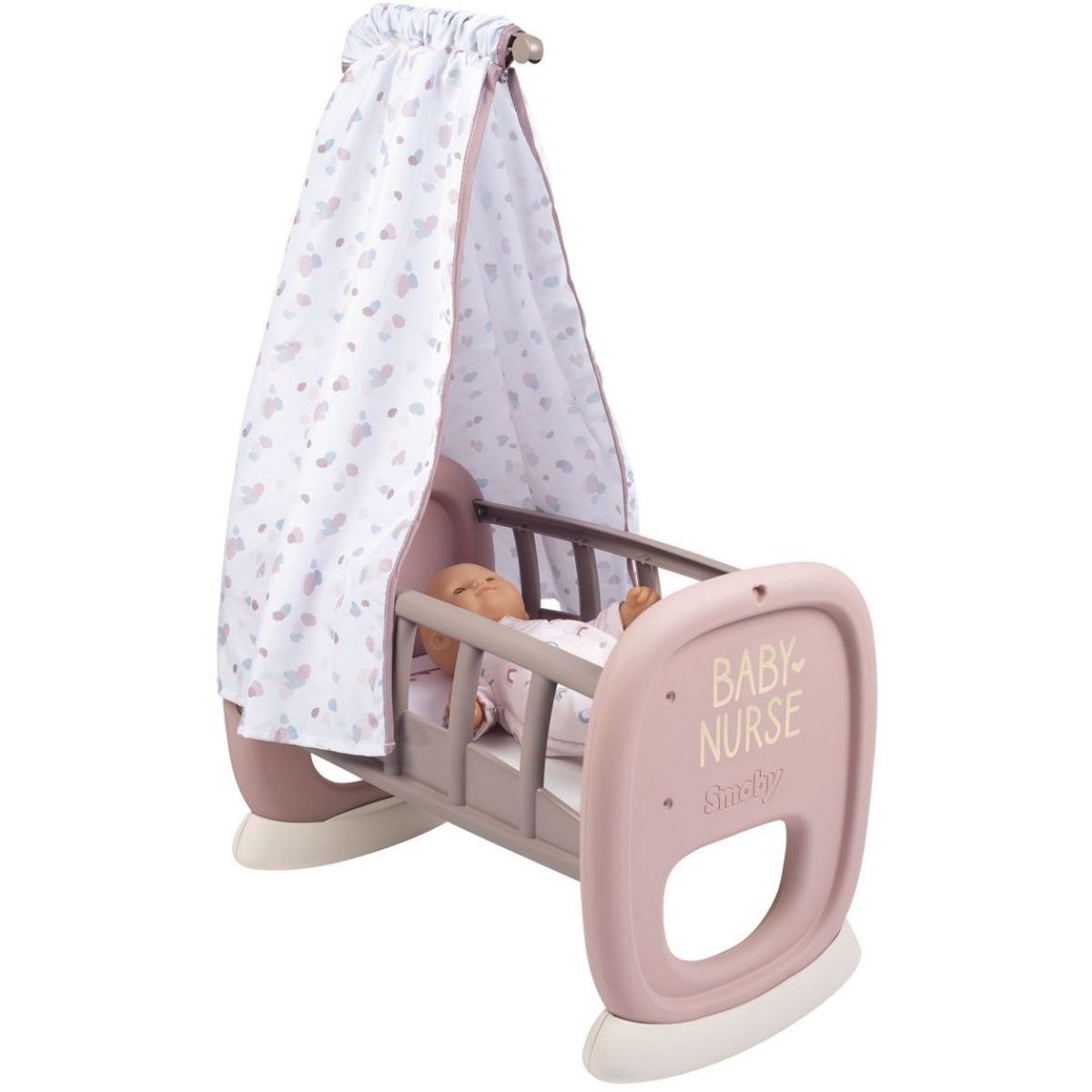 Kolíska béžovoružovej farby je určená pre bábiky veľkosti do 42 cm. Kolíska je opatrená nebesami, vo vnútri perinkou na prikrytie bábiky. Dievčatká po uložení bábiky do kolísky môžu pokojným hojdaním bábiku uspať. Učia sa tak citlivé trpezlivosti.