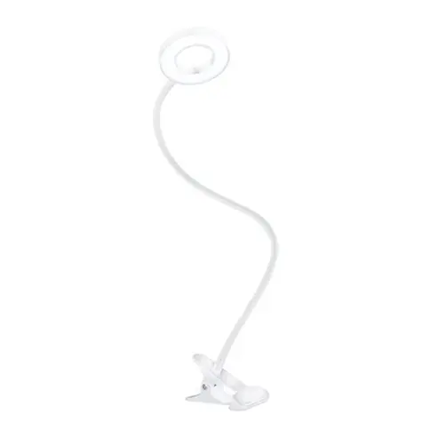 Solight LED stmievateľná stolná lampička s klipom biela / 8W / 300lm / 3000-5000K / USB