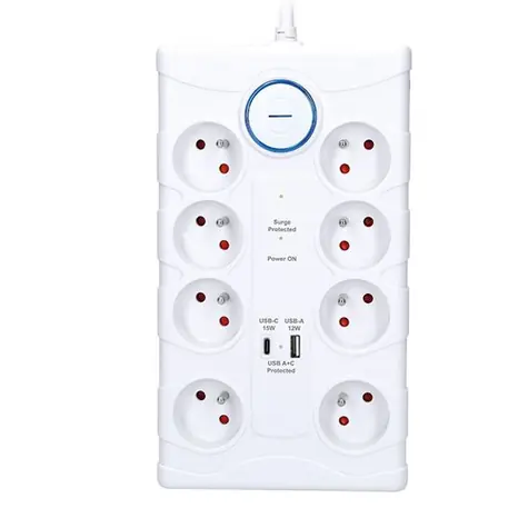 Acar F5 typ E 10m kábel / prepäťová ochrana / 16A / 2300 W / 5 zásuviek (typ E) (ppacarf5-10power)