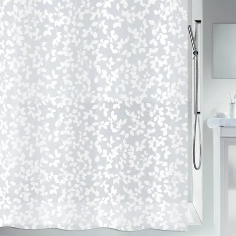 Spirella BLATT sprchový záves motív rastlín šedo-biely / PEVA / 180 x 200 cm