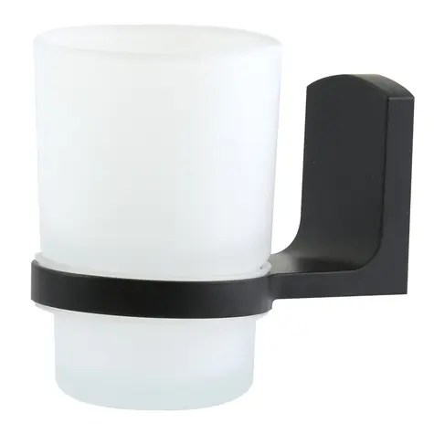 Spirella TAKU nástenný držiak s pohárom na kefky sklo matná čierna-biela / oceľ (7610583210791)