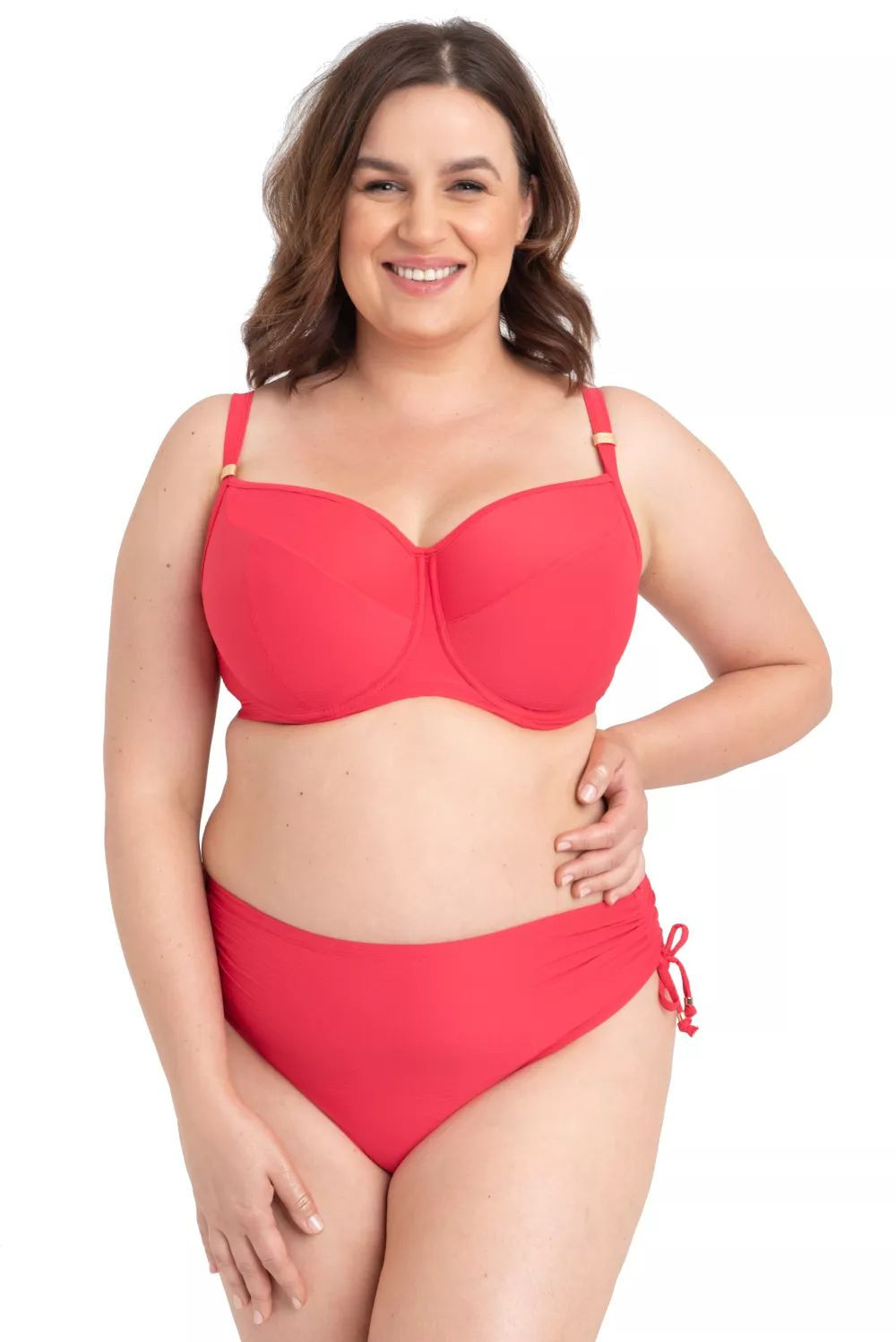 Spodný diel plaviek Kaia B400 Samanta - červený - vyrobený z kvalitného španielskeho mikrovlákna - vysoký pás - nastaviteľné boky so zlatými detailmi - certifikát Oeko-Tex STANDARD 100®Zloženie materiálu: 80% polyamid + 20% elastan