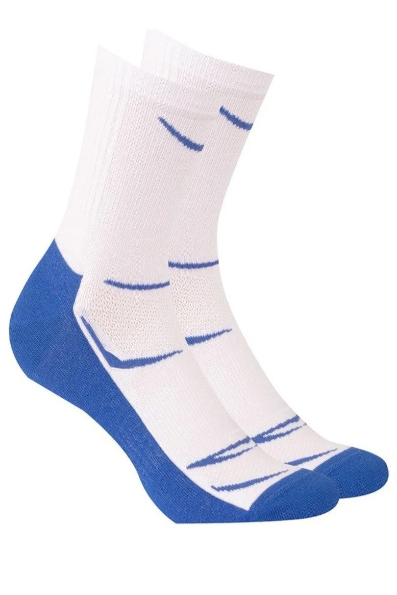 Bavlnené športové ponožky s froté na chodidle a striebornými iónmi. Výrobok sa vyznačuje uťahovacím systémom, ktorý zabraňuje skĺznutiu výrobku na nohe, kanálikmi na odvod prebytočnej vlhkosti a tepla, ako aj priedušnosťou a plochým strihom. Zloženie: 78% bavlna, 3% polyamid, 17% polypropylén, 2% elastan.