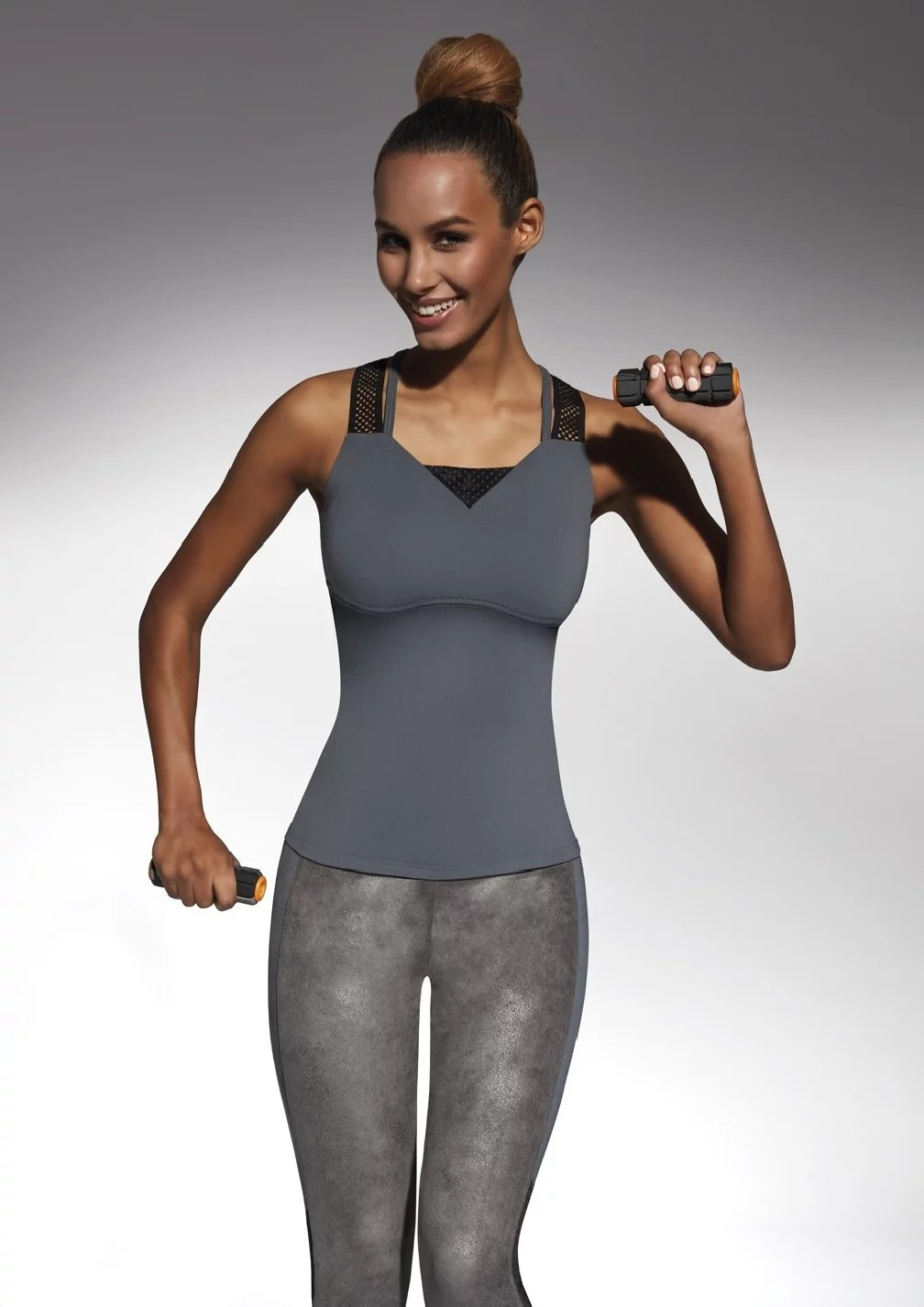 Športový top Bas Bleu Flint-Top 50 Materiál PLUSH-ZERO (PZ) ARCHROMA je úplne nepriehľadný, elastický a modeluje postavu. Tento materiál má funkčné vlastnosti, a preto sa označuje ako priedušný, pretože vďaka špeciálnej chemickej modifikácii štruktúry vlákna ARCHROMA výrazne zvýšil tok prúdenia vzduchu a odstránil vlhkosť z tela. Materiálové zloženie: 85% polyester, 15% elastan