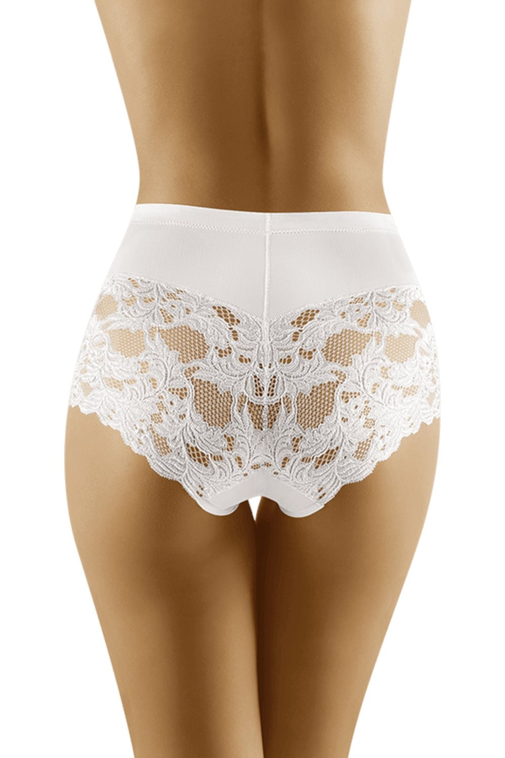 Dámske sťahovacie nohavičky Slimea Wolbar - vyššieho strihu - s plochými švami, vďaka ktorým sú ideálne pod oblečenie - na bokoch av zadnej časti sú zdobené čipkou s kvetinovým motívom - veľmi silne sťahujú boky a brucho Materiálové zloženie: 59% polyamid + 41% elastan