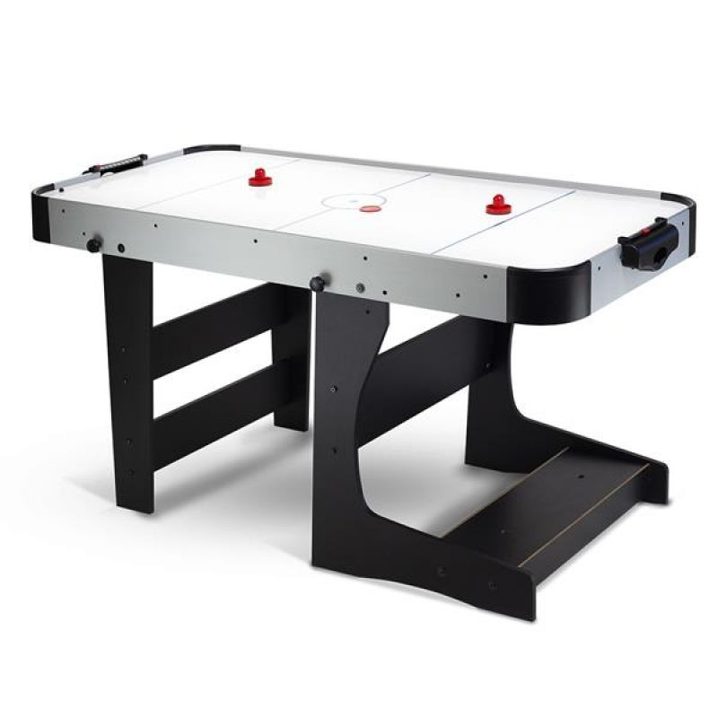 Stôl na vzdušný hokej SDG CG SDG CG je stôl na hranie stolného futbalu. Je ideálnym riešením na trávenie voľného času mimo obrazoviek počítačov a televízorov. Hra je určená pre deti a mládež. Stôl je vyrobený z kvalitnej MDF dosky, ktorá je odolná voči oderu, čo sa prejavuje v dlhej životnosti. Hracia plocha je vybavená špeciálnymi vzduchovými otvormi, ktoré uľahčujú pohyb puku a robia hru dynamickejšou. Pod stolom je nainštalovaná účinná batéria. Stôl sa vyznačuje vysokým dôrazom na detail a kvalitným spracovaním. Je vybavený ručným počítadlom trávy, vďaka ktorému je zábava ešte vzrušujúcejšia. Ďalšou výhodou je rýchla montáž. Ihneď po zakúpení si môžete užívať hru. Stôl je možné umiestniť vertikálne, takže zaberá výrazne menej miesta. Stôl je vyrobený z kvalitného materiálu, ktorý je vhodný na použitie v domácnosti: mDF rozmery: dĺžka: 150 cm, šírka: 69 cm, výška: 80 cm rozmery v zloženom stave: výška: 170 cm, dĺžka: 57 cm sklopná noha čistá hmotnosť: 31 kg hrubá hmotnosť: 32,7 kg poznámky: Vhodné pre deti od 3 rokov: nie je určený na komerčné použitie záruka 24 mesiacov