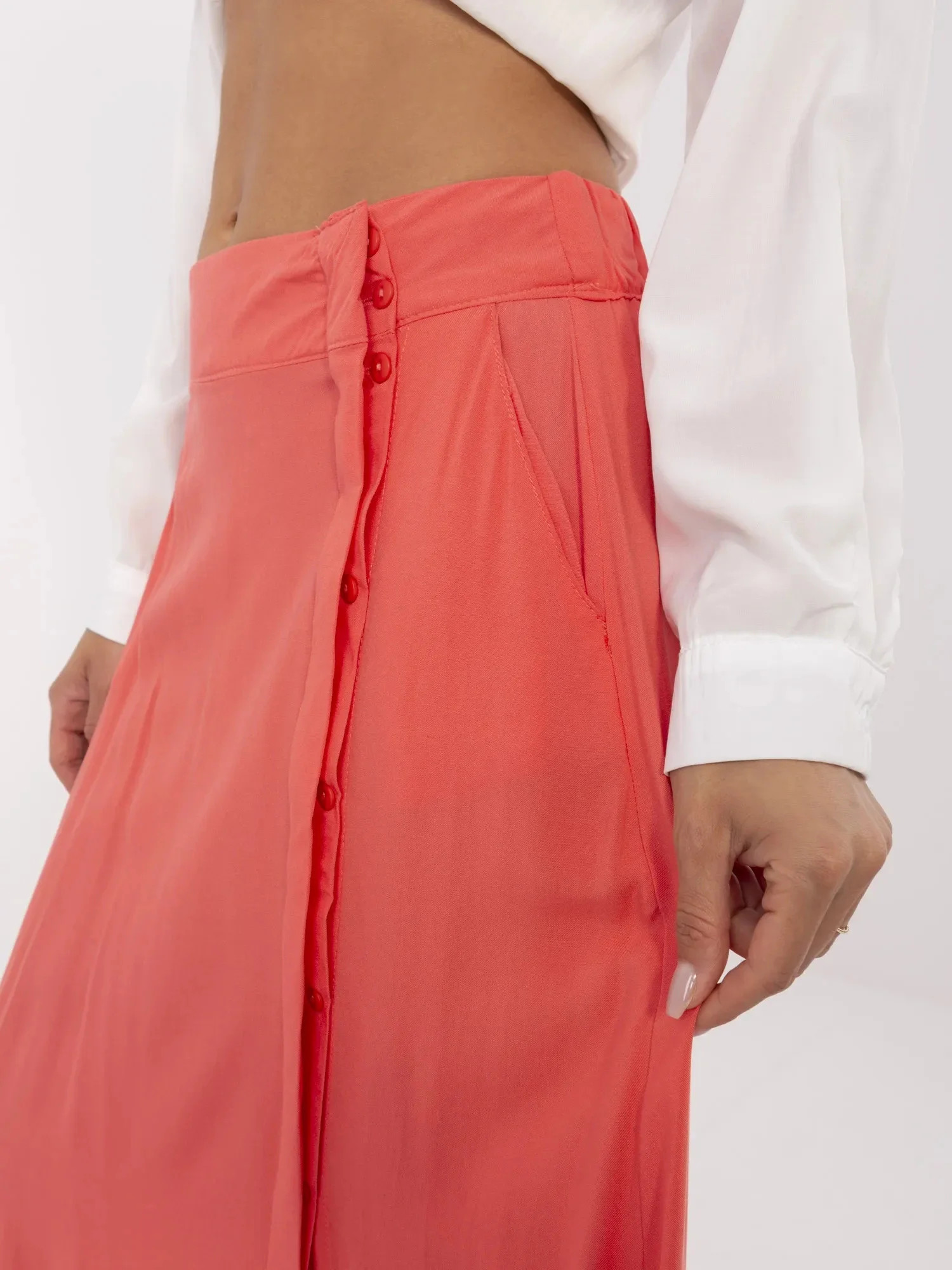 Dámska dlhá sukňa s vreckami, zapínanie na gombíky po celej dĺžke. Elastický pás. Materiál: 100% viskóza Modelka má na sebe veľkosť S. Miery modelky: výška 173 cm, prsia 85 cm, pás 62 cm, boky 95 cm. Rozmery sukne veľkosti S merané na plocho: šírka v páse - 37 cm (na plocho), šírka v páse - 47 cm (po natiahnutí), šírka v bokoch - 55 cm, celková dĺžka - 86 cm. Medzinárodná veľkosť Výška Obvod pása XS 34 156-164 66-74 S 36 160-168 72-80 M 38 162-172 78-86 L 40 164-174 84-90 XL 42 166-178 88-96