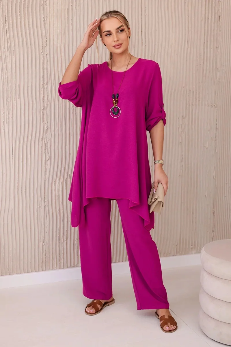 Domov Oblečenie a móda Dámske oblečenie Dámske blúzky a košele Súprava blúzka + nohavice s príveskom tmavo fialová UNI
