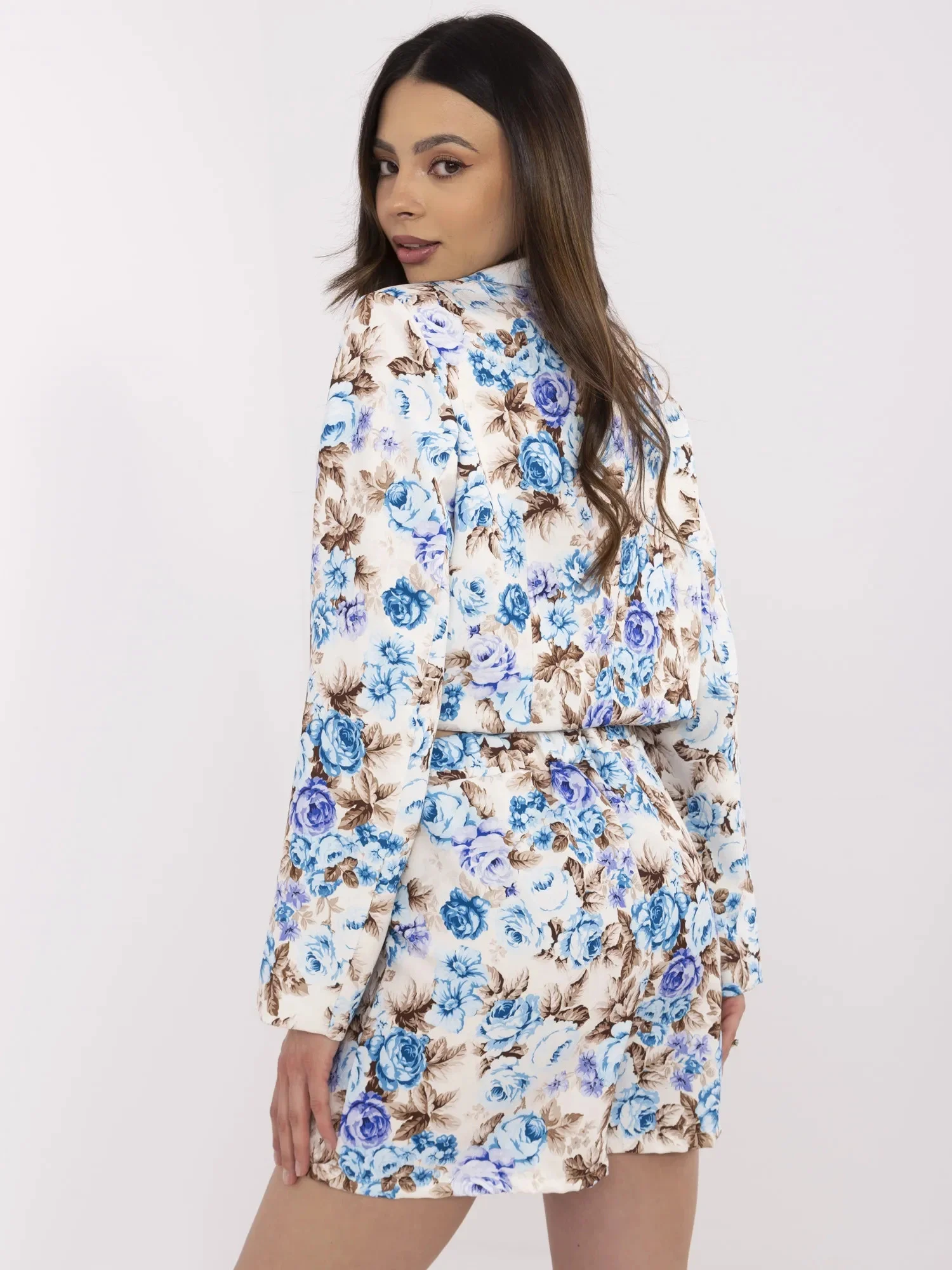 Modelka má na sebe veľkosť S/M. Rozmery modelky: výška 175 cm, prsia 84 cm, pás 61 cm, boky 91 cm. Rozmery bundy vo veľkosti S/M. merané na plocho: šírka v podpazuší - 51 cm, šírka v oblasti bokov - 43 cm, dĺžka rukáva - 62 cm, celková dĺžka - 42 cm. Rozmery šortiek vo veľkosti S/M: šírka v páse - 34 cm (na plocho), šírka v páse - 43 cm (po natiahnutí), výška v páse - 33 cm, šírka v bokoch - 47 cm, celková dĺžka - 44 cm.Veľkosť Alt.VýškaObvod hrudníkaVonkajšia dĺžka rukávovVonkajšia dĺžka rukávaS/M36/38160-17282-8659-6149-51L/XL40/42164-17891-9663-6553-55