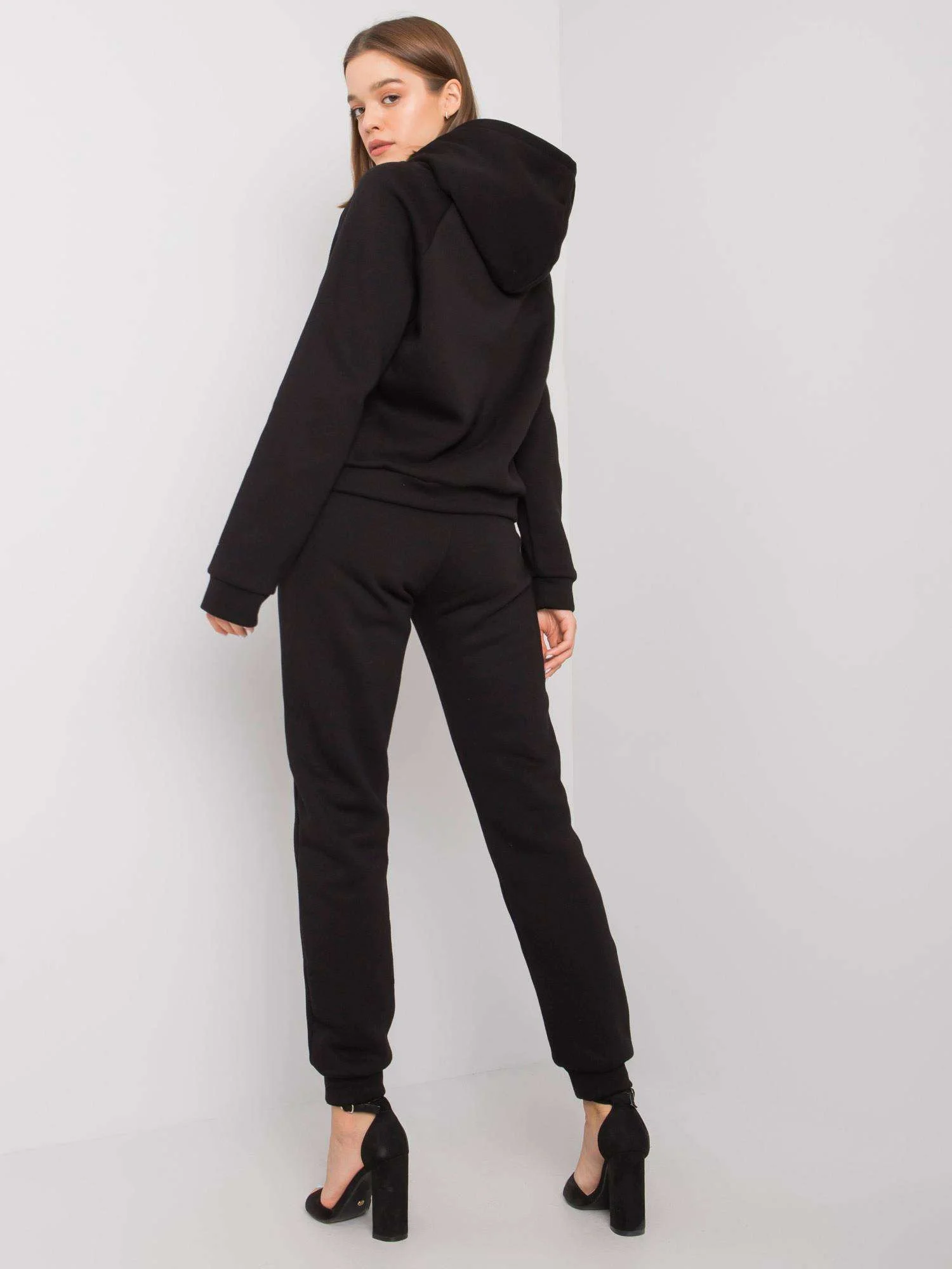 Čierna dvojdielna súprava pre ženy . Súprava obsahuje: mikinu, nohavice. Zloženie materiálu: 72% bavlna, 22% polyester, 6% elastan. Spôsob prania: pranie v práčke na 30 ° C Modelka má na sebe veľkosť S. Rozmery modelky: výška 169 cm, poprsie 90 cm, pás 60 cm, boky 84 cm. Rozmery súpravy vo veľkosti S merané na plocho: šírka v podpazuší - 53 cm, dĺžka blúzky - 51 cm, dĺžka rukávov - 61 cm, šírka v páse - 32 cm, dĺžka nohavíc - 98 cm Veľkosť Alt.Výška Obvod hrudníka hrudník Externé. dĺžka. rukáv Vnútorné. dĺžka rukávov S 36 160-164 82 59 49 M 38 162-172 86 61 51 L 40 164-174 91 63 53