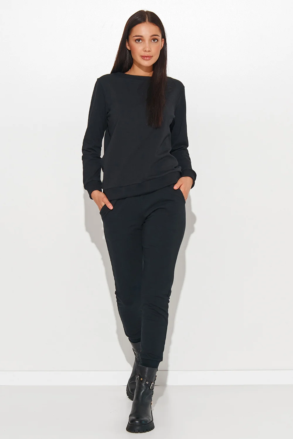 Klasická dámska súprava z tenkého bavlneného úpletu sa skvele hodí na pracovný aj každodenný styling. Sada je jednotná a jednoduchá. Jedinou ozdobou je krásna jemná nášivka s podpisom značky. Vďaka tomu je sada veľmi univerzálna. Blúzka má okrúhly výstrih a nohavice majú praktické postranné vrecká. Oblečte si tento komplet s obľúbenými topánkami na podpätku a elegantnou kabelkou a vyrazte do mesta. Dávate prednosť ležérnosti pred eleganciou? Potom si obujte športové topánky, vezmite batoh a oblečte si túto krásnu teplákovú súpravu. Bavlna 95% Elastan 5% Veľkosť Dĺžka Obvod bedier Obvod pŕs Obvod v páse 36/38 60/90 cm 88 cm 100 cm 64-88 cm 40/42 60/90 cm 96 cm 108 cm 68-96 cm