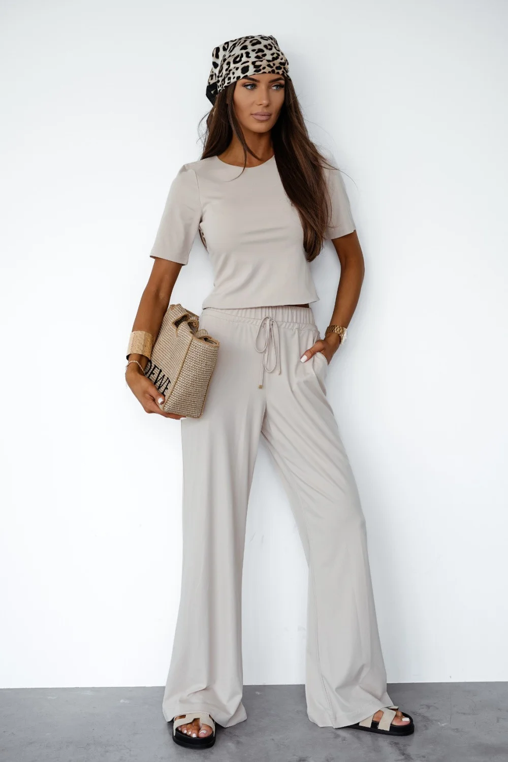 Dámska súprava z viskózy s pridaným elastanom je ideálnou kombináciou štýlu a pohodlia. Súprava obsahuje tričko s krátkymi rukávmi a klasickým okrúhlym výstrihom, ktorý jemne zvýrazňuje postavu a zaručuje pohodlné nosenie. Dlhé nohavice s elastickým pásom a šnúrkou v páse zaručujú dokonalé prispôsobenie a bočné vrecká dodávajú praktickosť. Vďaka ľahkému, priedušnému materiálu s pridaným elastanom je súprava mäkká, pružná a skvelá na každodenné nosenie aj relaxáciu. elastan 5 % Viskóza 95 % Veľkosť DĺžkaObvod bokov Obvod hrudníka Obvod pása M47/106 cm110 cm80 cm66-88 cmS45/106 cm102 cm76 cm62-82 cm