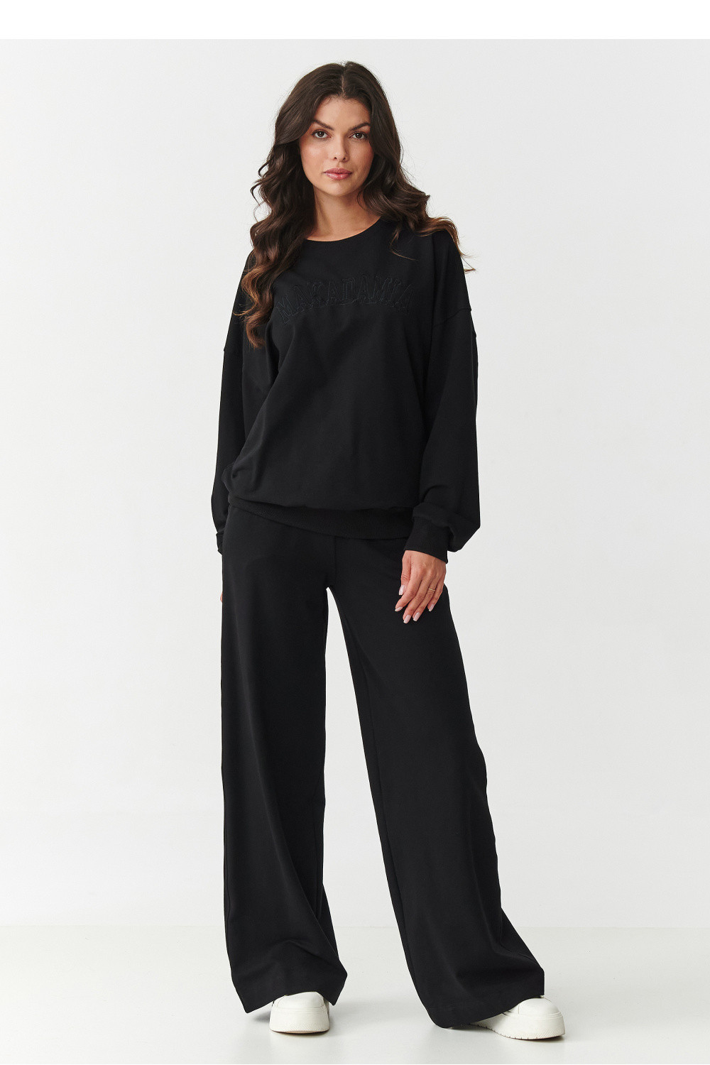 Vsadte na spojení pohodlí a módního vzhledu s dámským teplákovým kompletem, který je ideální jak na každodenní nošení, tak i na volné výlety nebo relaxaci doma. Vyrobený z měkké, prodyšné látky z 95% bavlny a 5% elastanu, zaručuje pohodlí při nošení a skvělé přizpůsobení postavě bez omezení pohybu. Horní část setu je klasická mikina s kulatým výstřihem a jemně sníženými rameny. Má lehce oversized střih, který stylizaci dodává uvolněnost a moderní charakter. Její výjimečnost zdůrazňuje vyšívaná aplikace s logem na přední straně, která celku dodává originalitu a jemný styl. Kalhoty se vyznačují módním střihem s širokými nohavicemi, které se krásně usazují při pohybu a dodávají postavě lehkost a vyvažují proporce. Elastický pás a praktické kapsy zvyšují funkčnost a pohodlí nošení. Ideální volba na každé roční období, teplákový set s širokými nohavicemi a vyšíváním je must-have v ženském šatníku. Pohod bavlna 95% Elastan 5% Veľkosť DĺžkaObvod bokov Obvod cez prsia Obvod pása 3666/110 cm92 cm120 cm92 cm3866/111 cm96 cm124 cm96 cm4066/112 cm100 cm128 cm100 cm