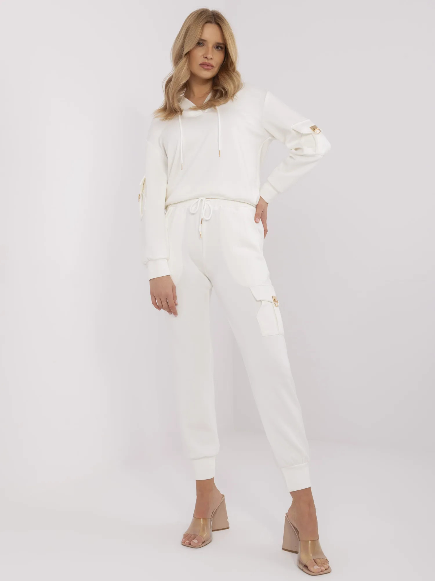 Modelka má na sebe veľkosť S/M. Rozmery modelky: výška 175 cm, prsia 90 cm, pás 66 cm, boky 94 cm. Rozmery blúzky vo veľkosti S/M merané na plocho: šírka v podpazuší - 51 cm, dĺžka rukáva - 55 cm (od švu), šírka v oblasti bokov - 42 cm, celková dĺžka - 57 cm. Rozmery nohavíc vo veľkosti S/M: šírka v páse - 33 cm (merané na plocho), šírka v páse - 55 cm (od švu), výška v páse - 29 cm, šírka v bokoch - 50 cm, celková dĺžka - 95 cm.Veľkosť Alt.VýškaObvod hrudníkaVonkajšia dĺžka rukávovVonkajšia dĺžka rukávaM/L38/40162-17486-9161-6351-53S/M36/38160-17282-8659-6149-51