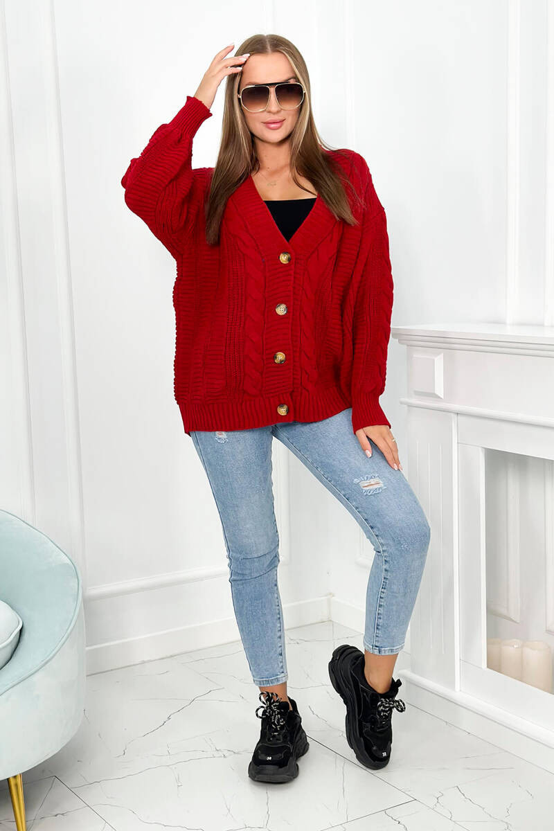 Sveter na gombíky s nadýchanými rukávmi je absolútnym hitom tejto jesene! Tento módny a pohodlný kus oblečenia dokonale kombinuje štýl a funkčnosť. Nariasené rukávy sú trendom, ktorý sa vrátil na svetové móla a evokujú retro ducha a romantické čaro. Volánové rukávy vďaka voľnému strihu dodávajú svetru ľahkosť a dievčenský šarm. Je to ideálna voľba pre tých, ktorí chcú svojmu štýlu dodať jemný avantgardný nádych. Okrem toho gombíky na prednej strane svetra umožňujú upraviť hĺbku výstrihu a umožňujú nosiť sveter na mnoho spôsobov - zapnutý na gombíky pre klasickejší vzhľad alebo rozopnutý pre voľnejší, ležérnejší efekt. Sveter je nielen módny, ale aj funkčný. Môžete ho nosiť ako k nohaviciam, tak k sukni a vytvoriť tak rôzne štýly pre rôzne príležitosti. Je tiež ideálnou voľbou na chladnejšie dni, keď potrebujete teplý a štýlový doplnok do svojho šatníka. Stojí za to pridať tento očarujúci sveter do svojej jesennej zbierky šatníka, ktorý určite upúta pozornosť a dodá jedinečný šarm každému stylingu. Veľkosť je univerzálna a hodí sa pre ženy veľkostí M, L, XL. TURECKÁ VÝROBA Zloženie materiálu: 70% akryl, 30 % vlny Rozmery: Šírka pod pazuchami: 62 cm Celková dĺžka: 59 cm Dĺžka rukávu od pazuchy: 39 cm Hmotnosť: 530 g