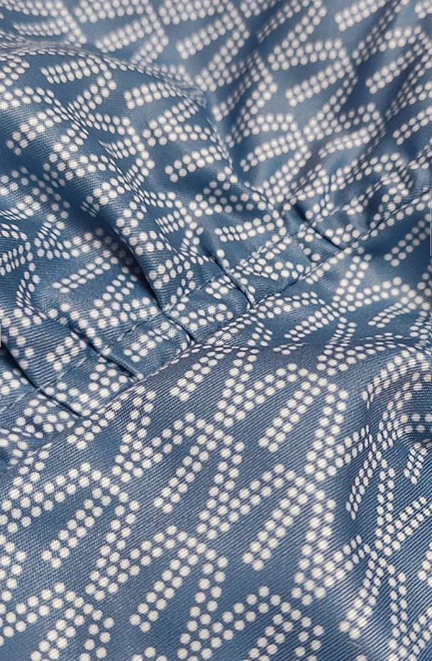 Venujte prosím pozornosť pri výbere veľkosti podľa veľkostnej tabuľky uvedenej nižšie. Veľkosti nezodpovedajú bežne nosené konfekciu. Bunda s naberanými rukávmi Bunda má voľný strih, podšívku, dve vrecká bez zapínania a zapína so zipsom. Model je olemovaný látkovými sťahovacími lemami. Bunda má dĺžku do pása. Zloženie: 100% polyester.