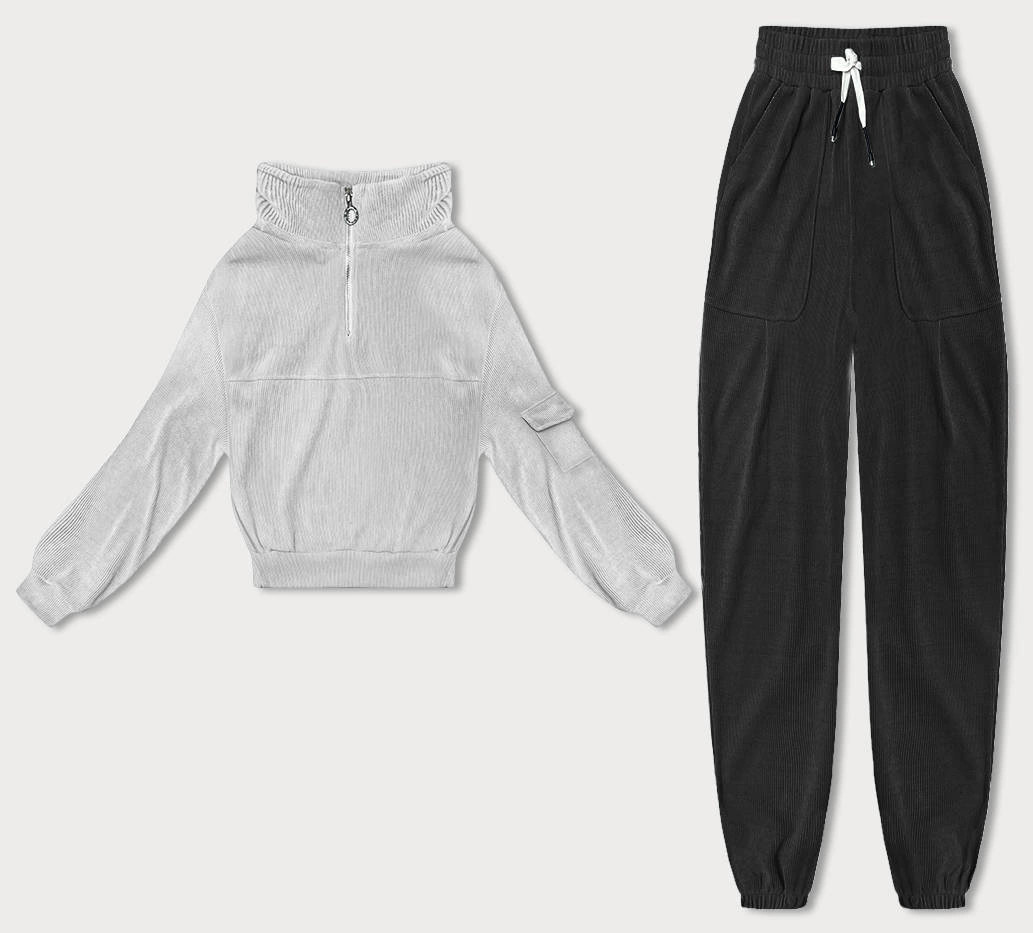 Venujte prosím pozornosť pri výbere veľkosti podľa veľkostnej tabuľky uvedenej nižšie. Veľkosti nezodpovedajú bežne nosené konfekciu. Tepláková súprava, ktorá sa skladá z mikiny a nohavíc. Krátka mikina so stojačikom Mikina je vyrobená z materiálu typu „wafel“, má krátky zips a oblieka sa cez hlavu. Na koncoch rukávov a na spodnom okraji modelu sú sťahovacie lemy. Model má dĺžku do pása. teplákové nohavice Nohavice majú dve vrecká. V páse modelu je guma a sťahujúca šnúrka. Model lemujú sťahovacie lemy. Zloženie: 65% bavlna, 35% polyester.