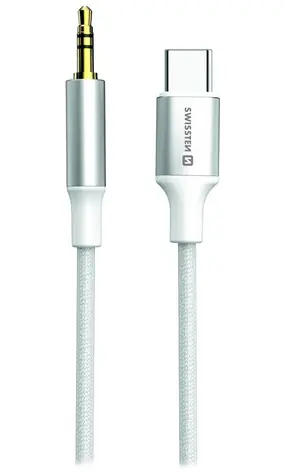 Swissten TEXTILE Audio adaptér USB-C (M) - 3.5mm Jack 1.5m biela (73502310)
