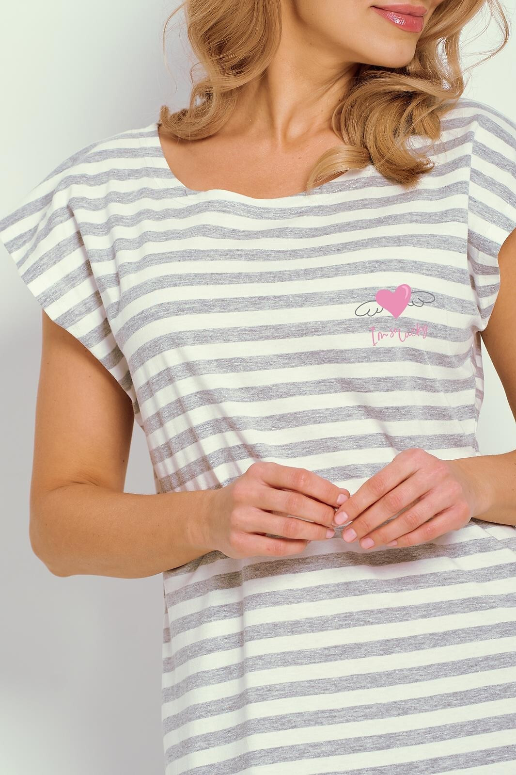 Dámske letné tričko - vysokokvalitná bavlna s prúžkovanou potlačou - krátke rukávy - polkruhový výstrih - dĺžka pred kolená Zloženie: 95 % bavlna, 5 % polyester