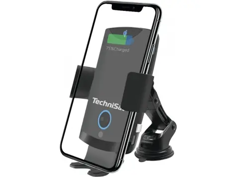 TechniSat Smartcharge 2 Nabíjací držiak telefónu do auta čierna / 65-100 mm / do mriežky / na sklo / Qi / USB-C / 10W (V058H)