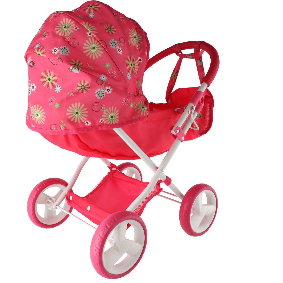 Sklápacia strieška ochráni bábiku pred „slnečnými lúčmi“ detskej fantázie, zatiaľ čo praktický košík dole a taška na rukoväť poslúžia na všetky potrebné drobnosti.