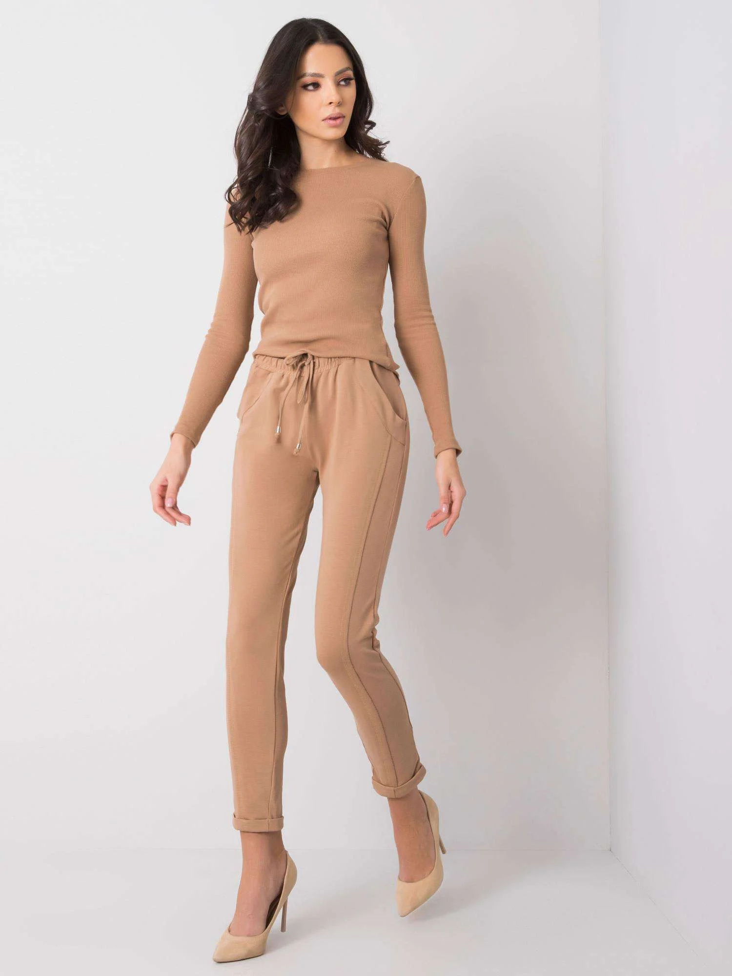 doplnky: vrecká, elastický pás zloženie látky: 90% bavlna, 10% elastan spôsob prania: pranie v práčke na 30 °C Modelka má na sebe veľkosť XS. Rozmery modelky: výška 175 cm, poprsie 90 cm, pás 60 cm, boky 90 cm. Rozmery nohavíc vo veľkosti XS merané na plocho: šírka v páse - 32 cm, dĺžka - 90 cm, výška v páse - 26 cm. Rozmery nohavíc veľkosti S merané na plocho: šírka v páse - 34 cm, dĺžka - 91 cm, výška v páse - 28 cm.Medzinárodná veľkosť Výška Obvod pása Obvod bokov Vonkajšia dĺžka nohavíc Dĺžka vnútornej nohavice XS 34 156-164 66-74 86 84 73 S 36 160-168 72-80 90 87 74 M 38 162-172 78-86 94 90 75 L 40 164-174 84-90 102 94 76 XL 42 166-178 88-96 106 98 77