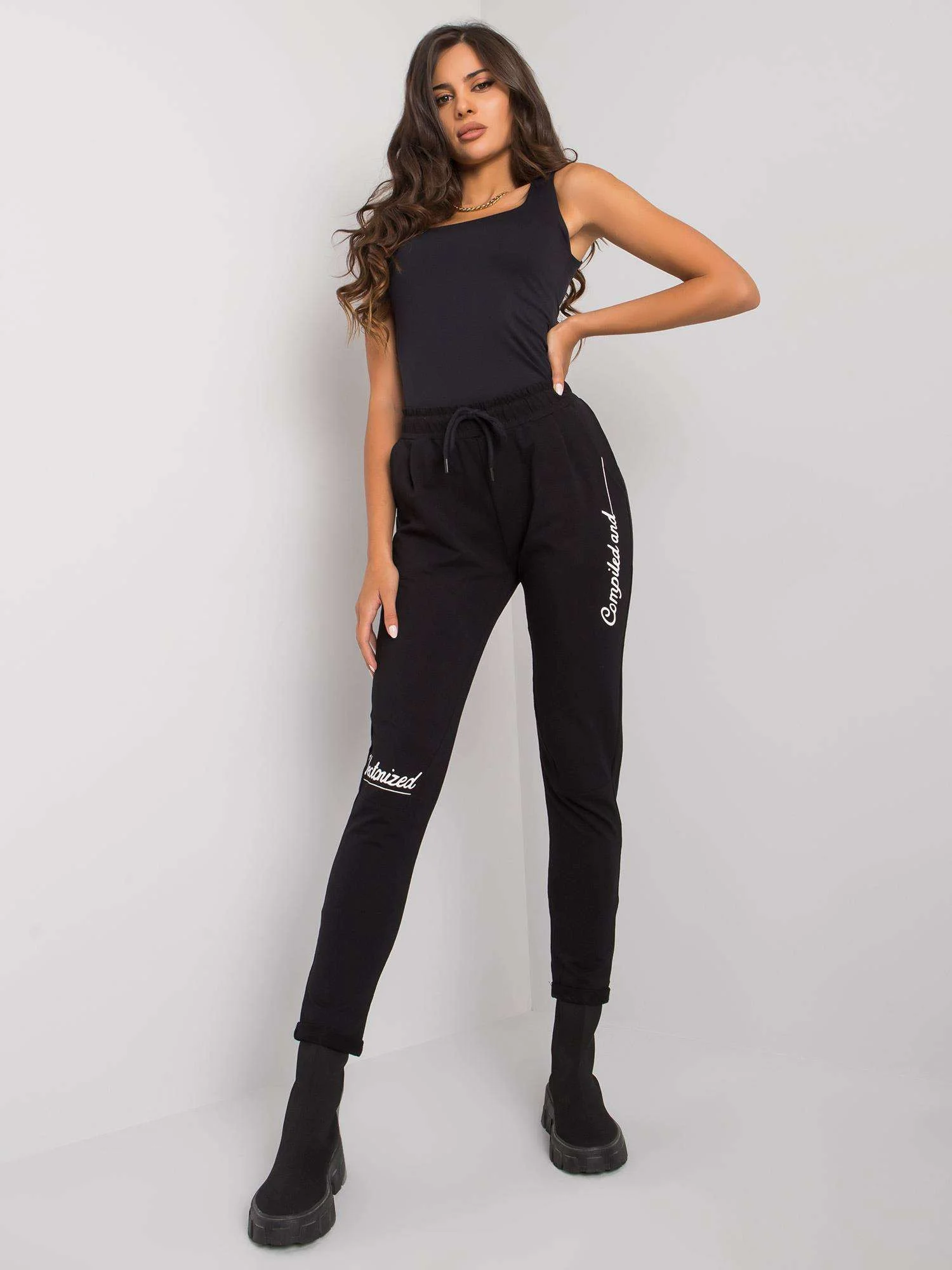 Čierne bavlnené tepláky. Doplnky: vrecká, elastický pás, popruhy zloženie látky: 90% bavlna, 10% elastan spôsob prania: pranie v práčke na 30 °C Modelka má na sebe veľkosť S. Rozmery modelky: výška 176 cm, poprsie 86 cm, pás 60 cm, boky 88 cm. Veľkosť nohavíc S meraná na plocho: šírka v páse - 33 cm, celková dĺžka - 97 cm, výška v páse - 28 cm.Medzinárodná veľkosť Výška Obvod pása Obvod bokov Vonkajšia dĺžka nohavíc Dĺžka vnútornej nohavice S 36 160-168 72-80 90 87 74 M 38 162-172 78-86 94 90 75 L 40 164-174 84-90 102 94 76 XL 42 166-178 88-96 106 98 77
