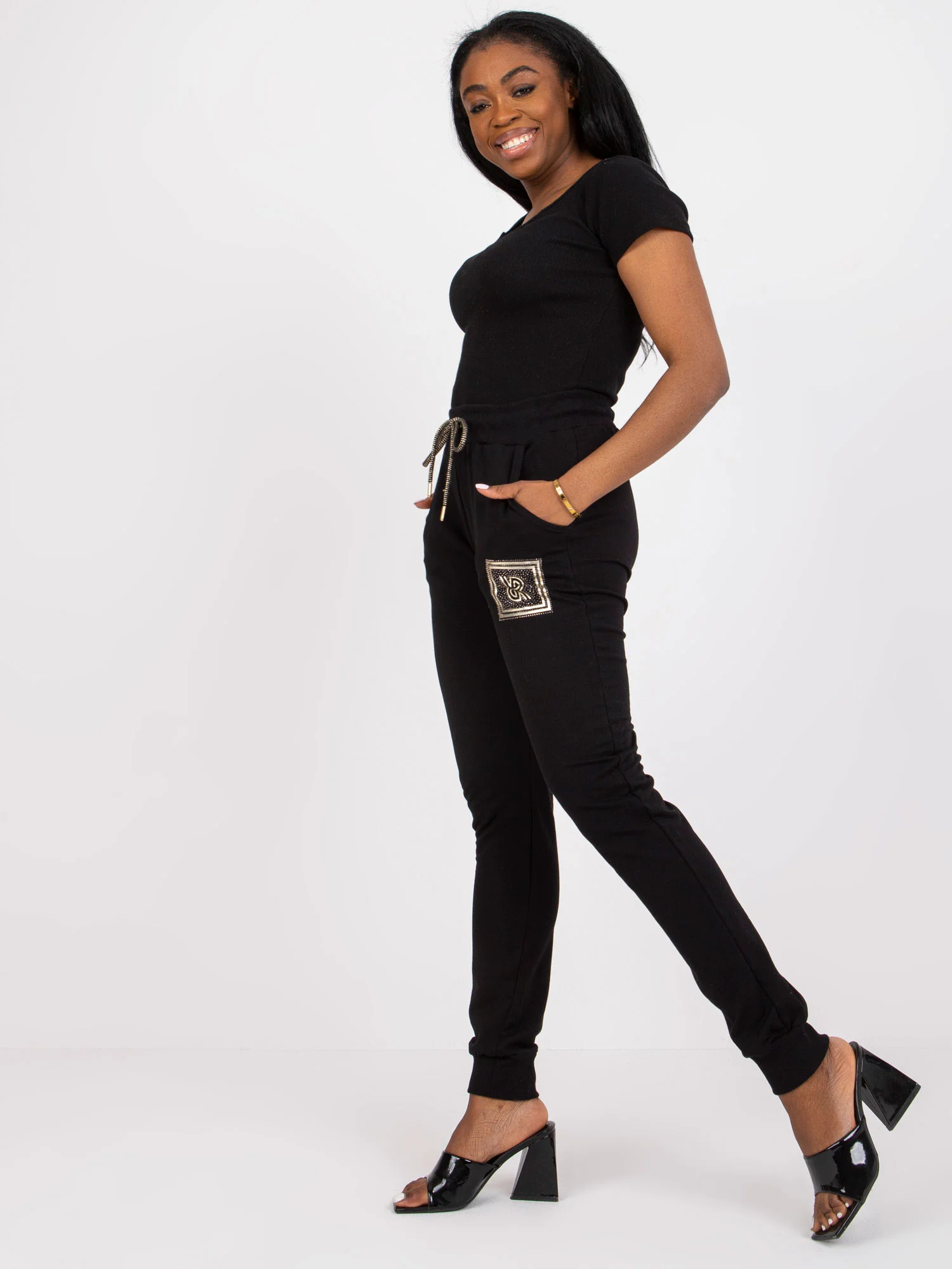 príslušenstvo: vrecká, nohavice, elastický pás zloženie látky: 90 % bavlna, 10 % elastan spôsob prania: pranie v práčke pri 30 °C Modelka má na sebe veľkosť S. Miery modelky: výška 169 cm, prsia 86 cm, pás 67 cm, boky 88 cm. Rozmery nohavíc veľkosti S merané na plocho: šírka pása - 37 cm, dĺžka nohavíc - 100 cm, výška pása - 28 cm.Medzinárodná veľkosťVýškaObvod pásaObvod bokovVonkajšia dĺžka nohavícVnútorná dĺžka nohyS36160-16872-80908774M38162-17278-86949075L40164-17484-901029476XL42166-17888-961069877